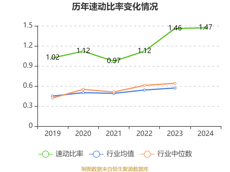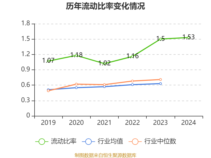 2024年,公司流动比率为1.53,速动比率为1.47。