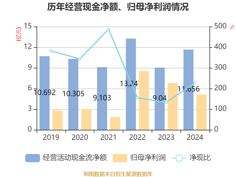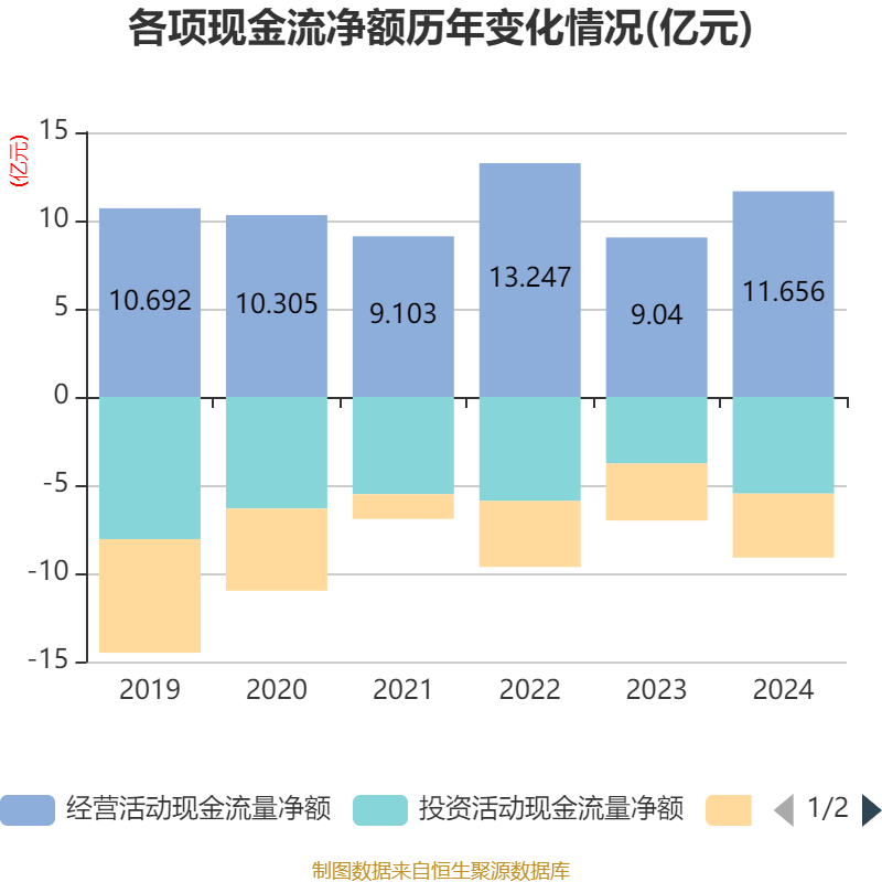 截至2024年,公司经营活动现金流净额为11.66亿元,同比增长28.94%;筹资活动现金流净额-3.63亿元,同比减少3981.12万元;投资活动现金流净额-5.48亿元,上年同期为-3.78亿元。