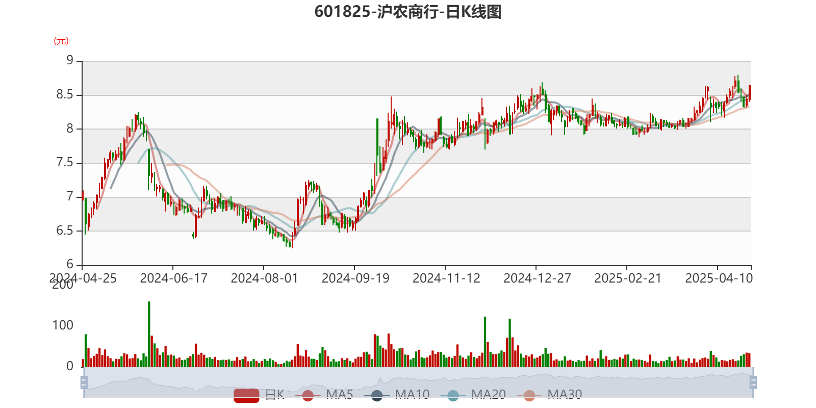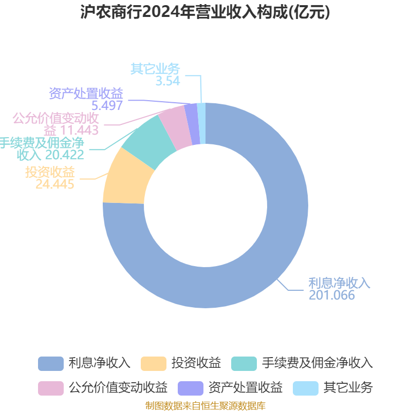 中证智能财讯沪农商行(601825)4月25日披露2024年年度报告。2024年,公司实现营业总收入266.41亿元,同比增长0.86%;归母净利润122.88亿元,同比增长1.20%;扣非净利润118.4亿元,同比增长2.75%;经营活动产生的现金流量净额为512.03亿元,同比增长30.73%;报告期内,沪农商行基本每股收益为1.27元,加权平均净资产收益率为10.35%。公司2024年度分配预案为:拟向全体股东每10股派现1.93元(含税)。
