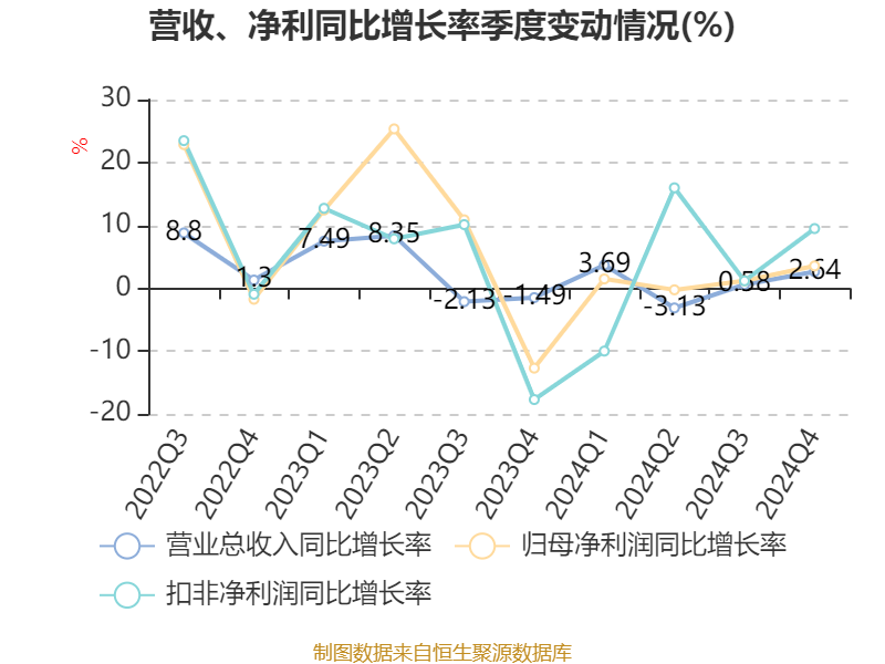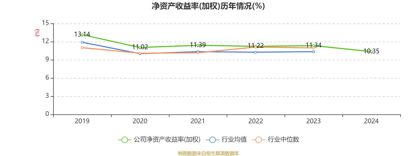 数据显示,2024年公司加权平均净资产收益率为10.35%,较上年同期下降0.99个百分点。