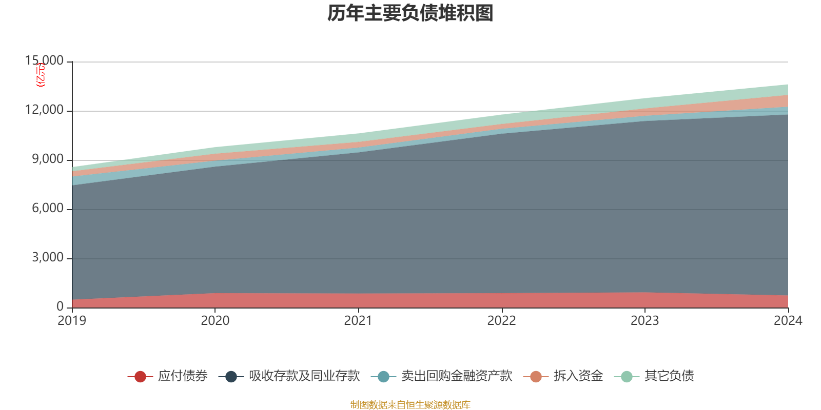 负债重大变化方面,截至2024年末,公司应付债券较上年末减少20.12%,占公司总资产比重下降1.67个百分点;拆入资金较上年末增加60.76%,占公司总资产比重上升1.63个百分点;卖出回购金融资产款较上年末增加49.92%,占公司总资产比重上升0.92个百分点;吸收存款及同业存款较上年末增加5.56%,占公司总资产比重下降0.91个百分点。