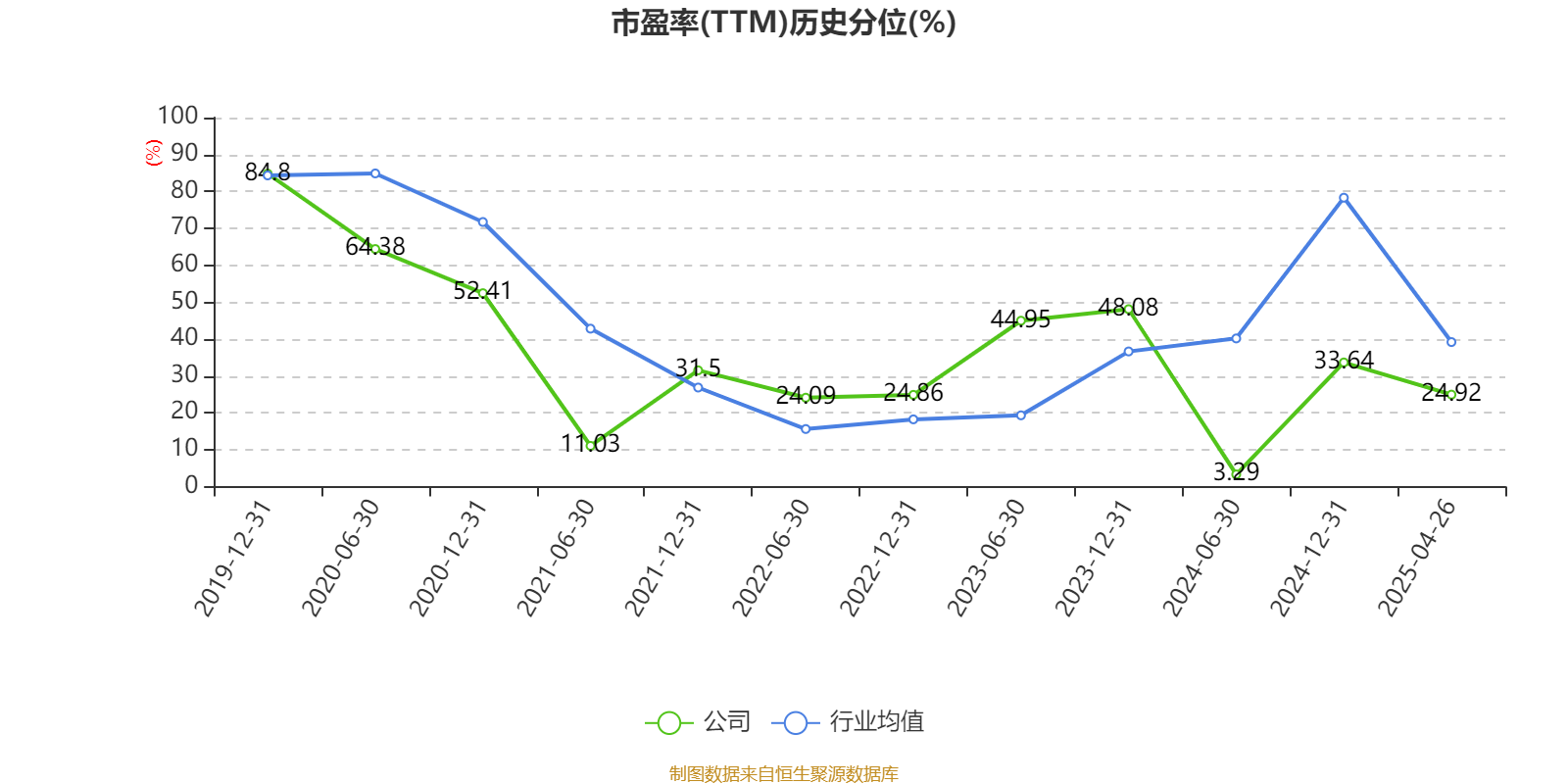 市盈率、市净率为负时,不显示当期分位数,会导致折线图中断。