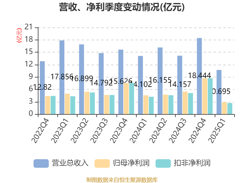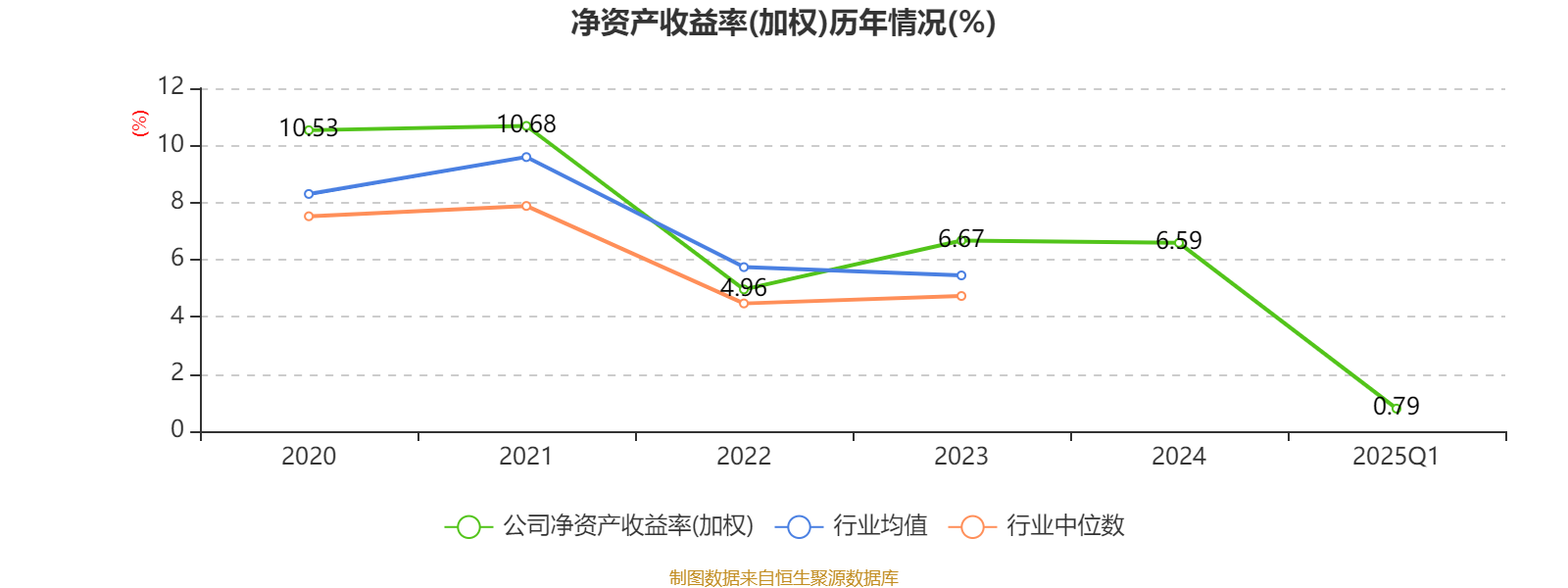 盈利能力方面, 2025年一季度公司加权平均净资产收益率为0.79%,同比下降0.52个百分点。