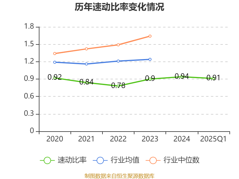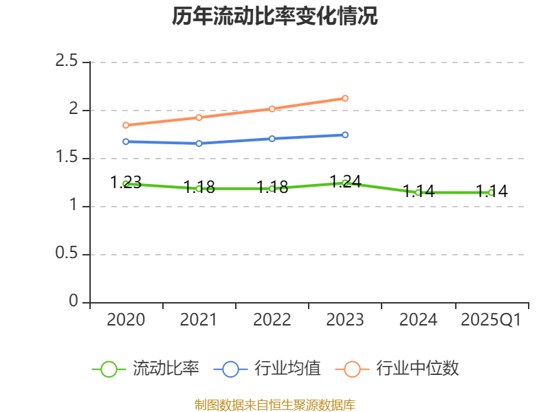 2025年第一季度,公司流动比率为1.14,速动比率为0.91。