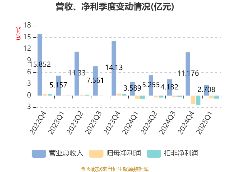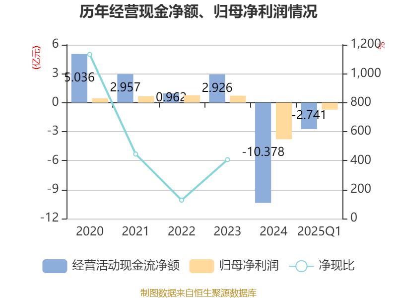 截至2025年一季度末,公司经营活动现金流净额为-2.74亿元,同比增加2.13亿元;筹资活动现金流净额1.11亿元,同比增加5066.59万元;投资活动现金流净额-560.29万元,上年同期为-2015.91万元。