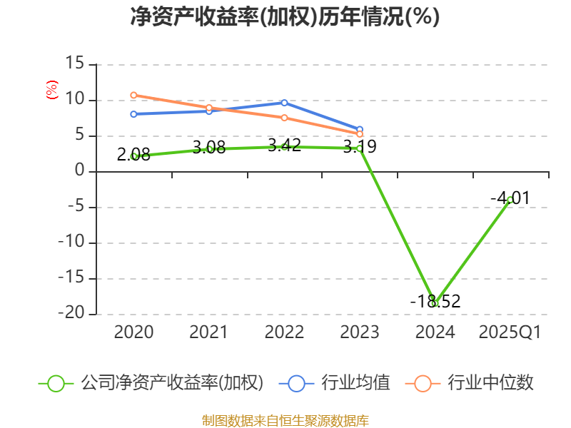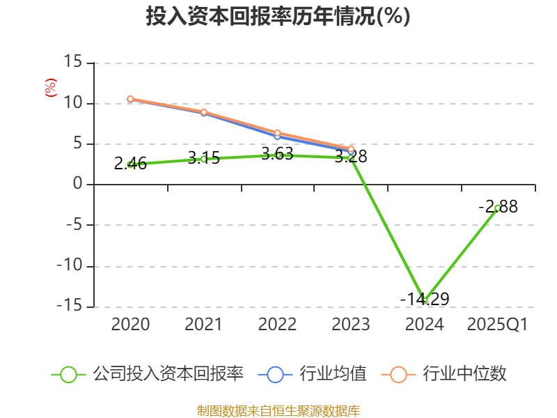 盈利能力方面, 2025年一季度公司加权平均净资产收益率为-4.01%,同比下降0.56个百分点。公司2025年第一季度投入资本回报率为-2.88%,较上年同期上升0.36个百分点。
