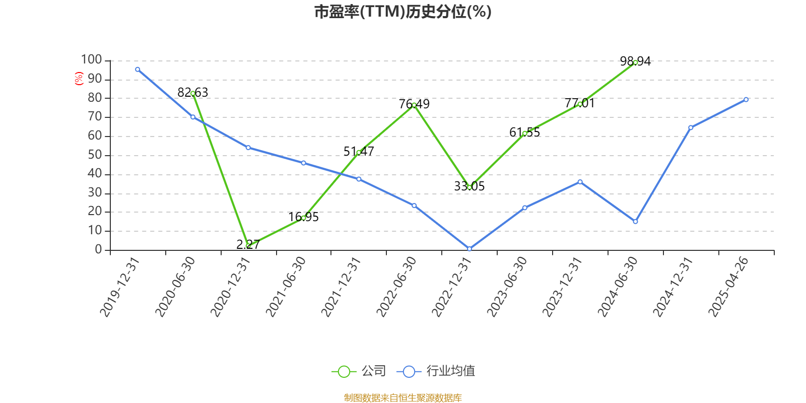 市盈率、市净率为负时,不显示当期分位数,会导致折线图中断。
