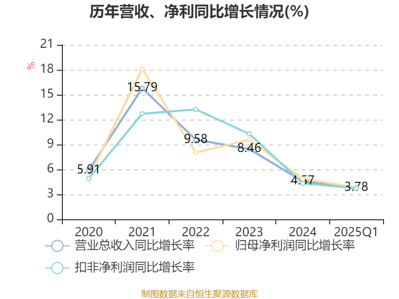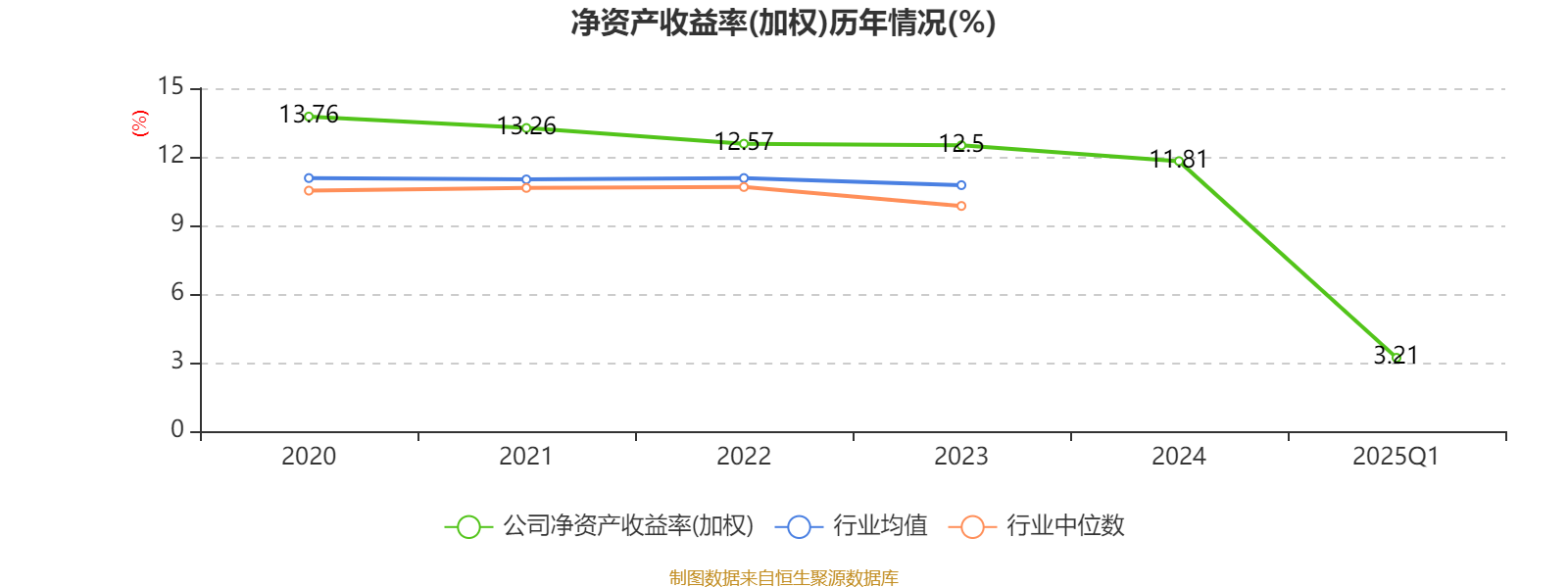 盈利能力方面, 2025年一季度公司加权平均净资产收益率为3.21%,同比下降0.21个百分点。
