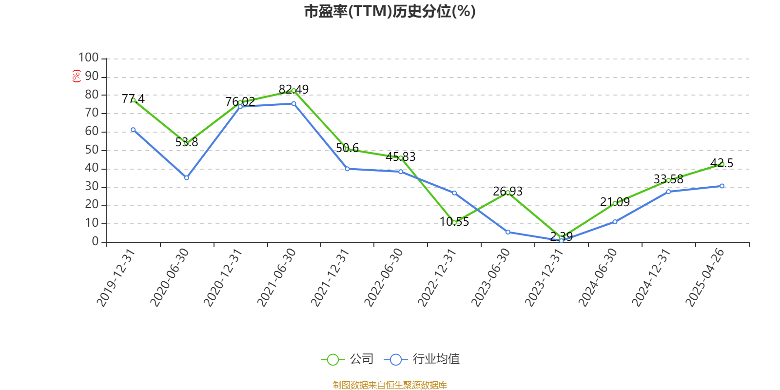 市盈率、市净率为负时,不显示当期分位数,会导致折线图中断。