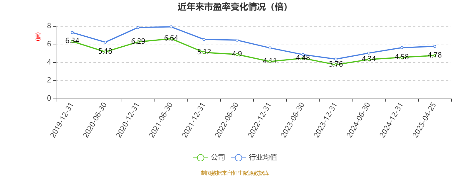 以4月25日收盘价计算,长沙银行目前市盈率(TTM)约为4.78倍,市净率(LF)约0.48倍,市销率(TTM)约1.44倍。