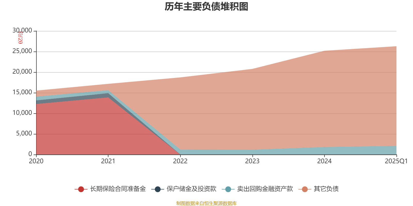 负债重大变化方面,截至2025年一季度末,公司卖出回购金融资产款较上年末增加15.11%,占公司总资产比重上升0.76个百分点;预收保费较上年末减少70.43%,占公司总资产比重下降0.45个百分点;递延所得税负债较上年末减少71.26%,占公司总资产比重下降0.19个百分点;应付职工薪酬较上年末减少21.78%,占公司总资产比重下降0.09个百分点。