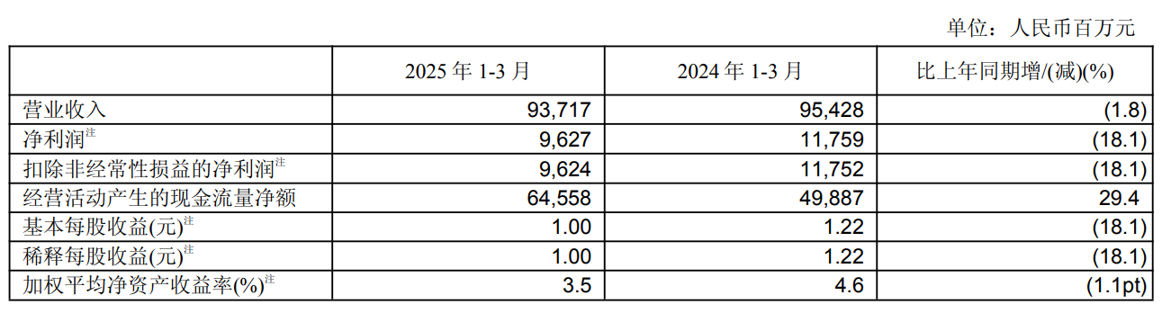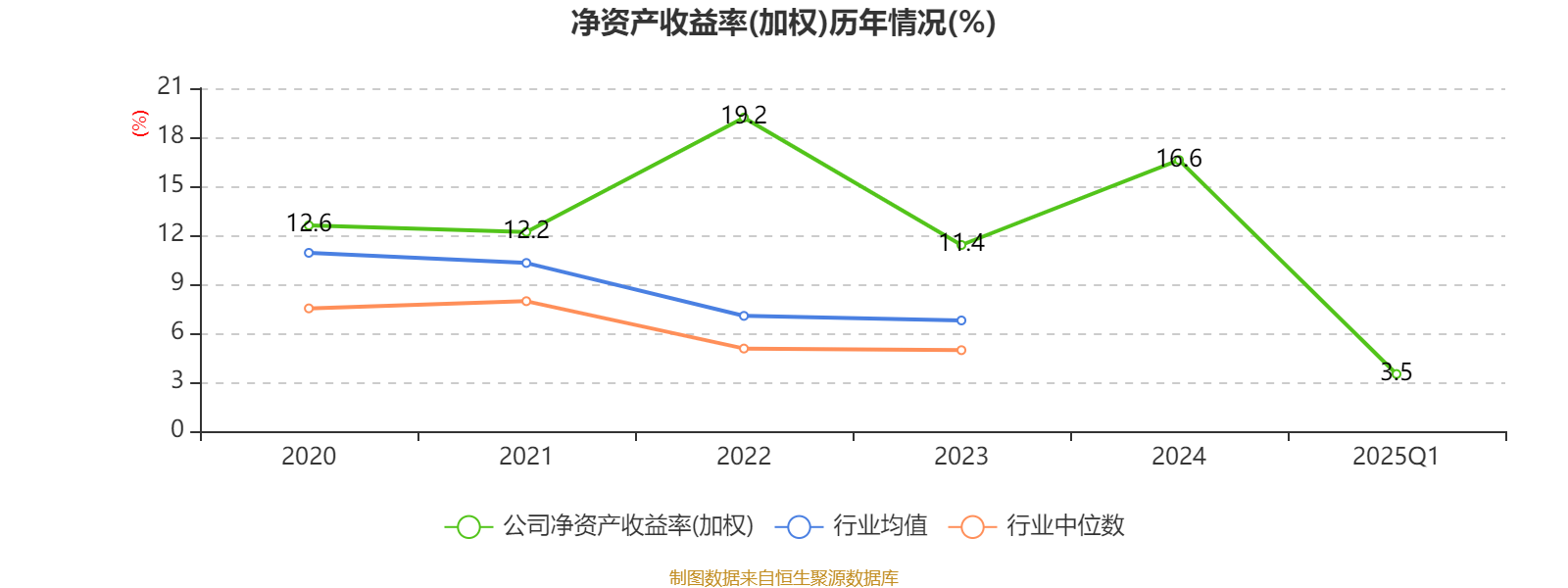 盈利能力方面, 2025年一季度公司加权平均净资产收益率为3.5%,同比下降1.1个百分点。