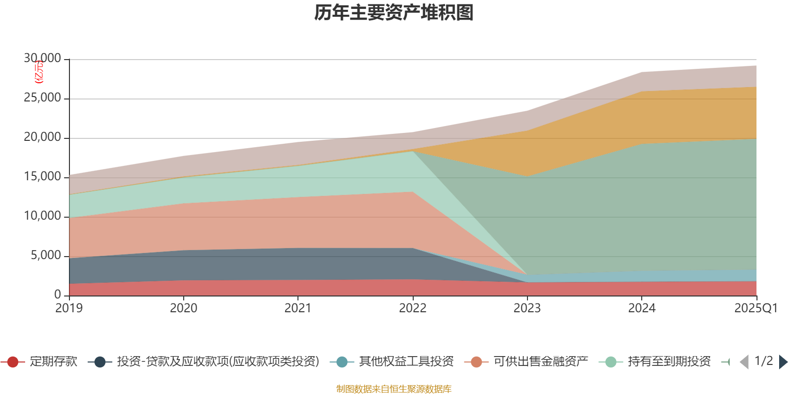 资产重大变化方面,截至2025年一季度末,公司交易性金融资产合计较上年末减少1.07%,占公司总资产比重下降0.91个百分点;货币资金较上年末增加60.17%,占公司总资产比重上升0.58个百分点;递延所得税资产较上年末增加218.39%,占公司总资产比重上升0.26个百分点;债权投资较上年末减少7.21%,占公司总资产比重下降0.22个百分点。