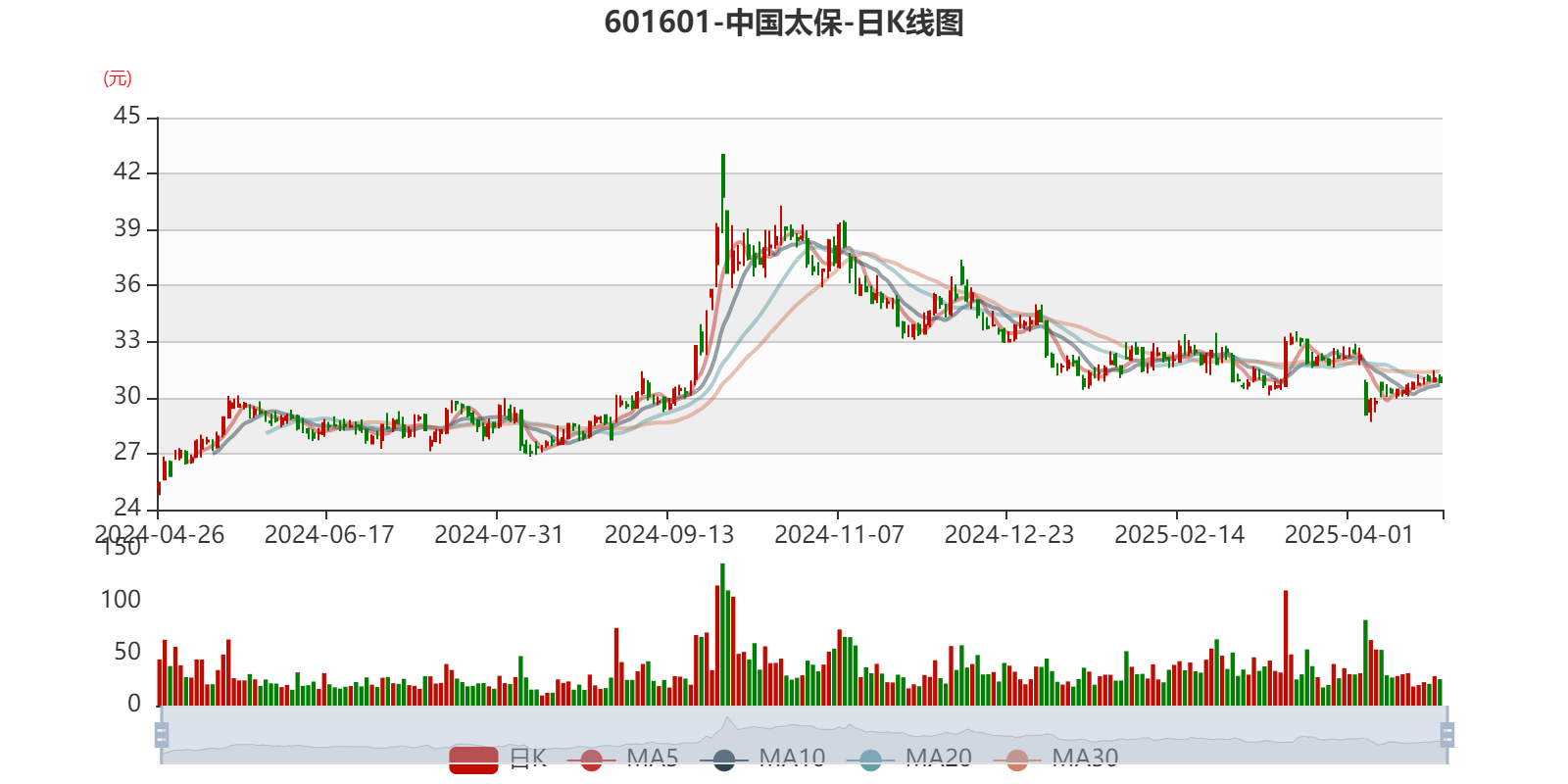 以4月25日收盘价计算,中国太保目前市盈率(TTM)约为6.92倍,市净率(LF)约1.12倍,市销率(TTM)约0.74倍。