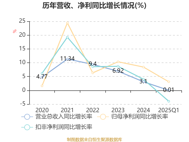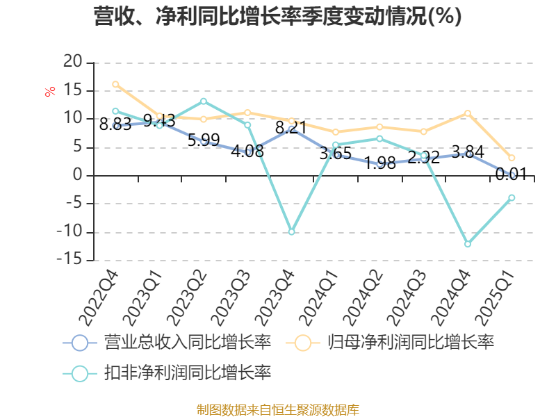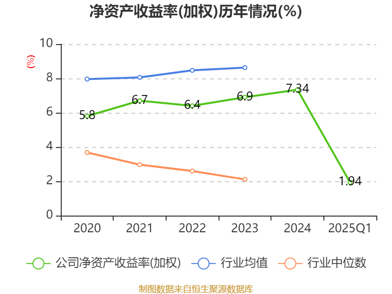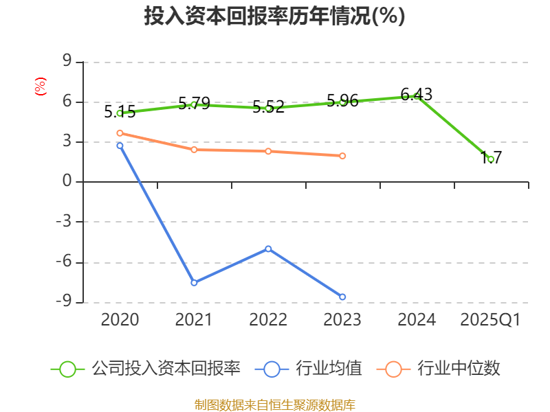 盈利能力方面, 2025年一季度公司加权平均净资产收益率为1.94%,同比上升0.02个百分点。公司2025年第一季度投入资本回报率为1.7%,较上年同期上升0.01个百分点。