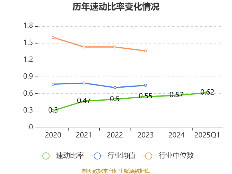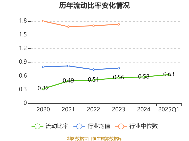 2025年第一季度,公司流动比率为0.63,速动比率为0.62。
