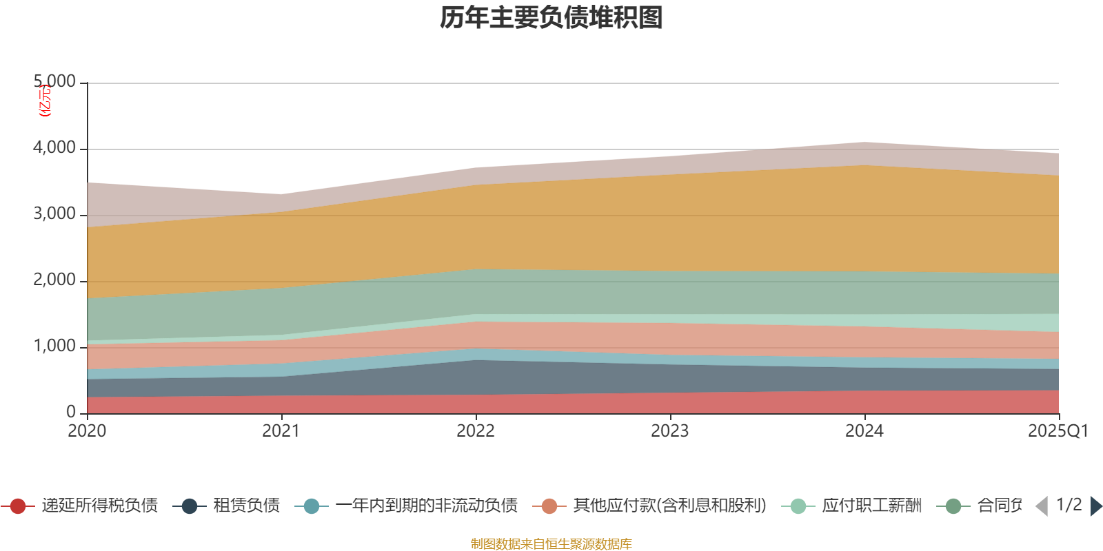 负债重大变化方面,截至2025年一季度末,公司应付票据及应付账款较上年末减少7.55%,占公司总资产比重下降1.24个百分点;应付职工薪酬较上年末增加49.91%,占公司总资产比重上升1.07个百分点;其他应付款(含利息和股利)较上年末减少12.68%,占公司总资产比重下降0.64个百分点;合同负债较上年末减少6.48%,占公司总资产比重下降0.42个百分点。