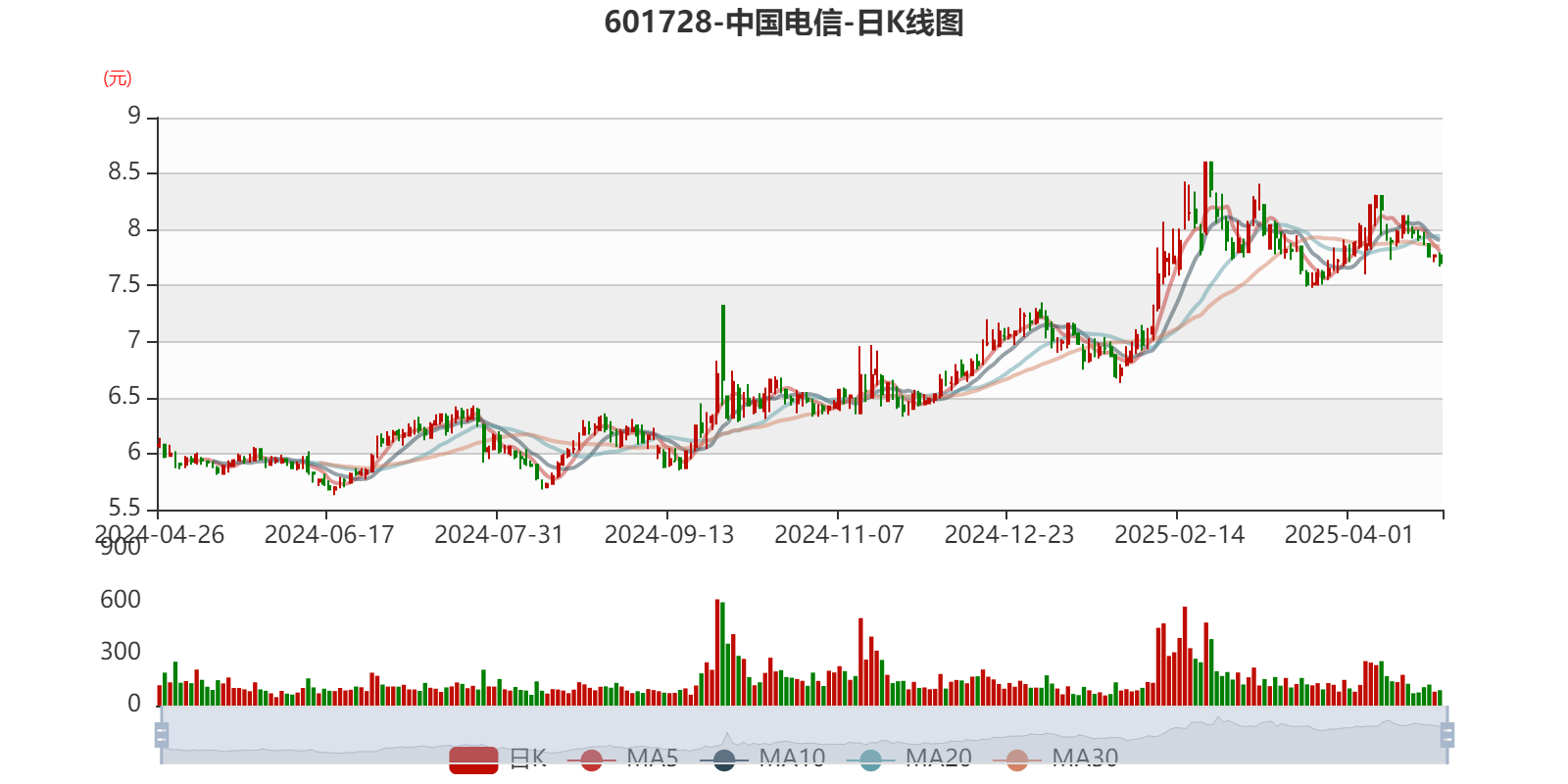 一季报显示,2025年一季度末的公司十大流通股东中,持股最多的为中国电信集团有限公司,占比63.904%。在具体持股比例上,中国电信集团有限公司、香港中央结算(代理人)有限公司持股有所上升,中国人寿保险股份有限公司-传统-普通保险产品-005L-CT001沪、广东省广晟控股集团有限公司-2024年面向专业投资者非公开发行可交换公司债券(第一期)质押专户持股有所下降。