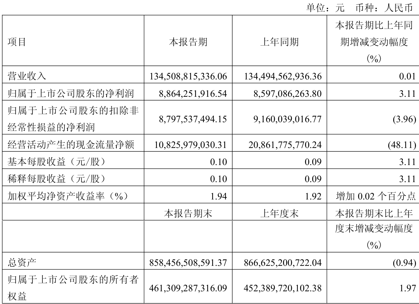 中证智能财讯中国电信(601728)4月26日披露2025年第一季度报告。公司实现营业总收入1345.09亿元,同比增长0.01%;归母净利润88.64亿元,同比增长3.11%;扣非净利润87.98亿元,同比下降3.96%;经营活动产生的现金流量净额为108.26亿元,同比下降48.11%;报告期内,中国电信基本每股收益为0.1元,加权平均净资产收益率为1.94%。