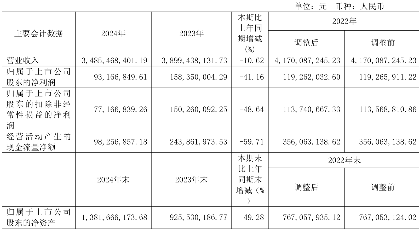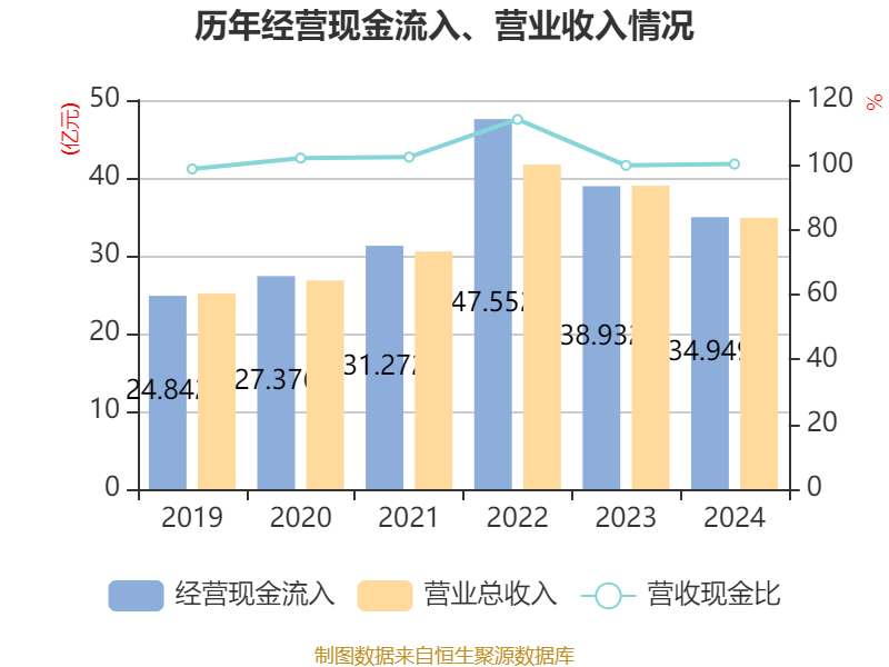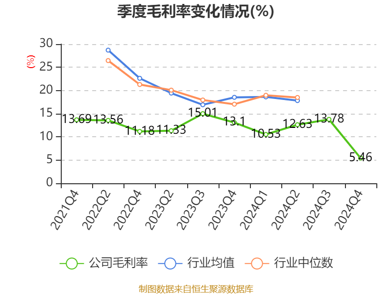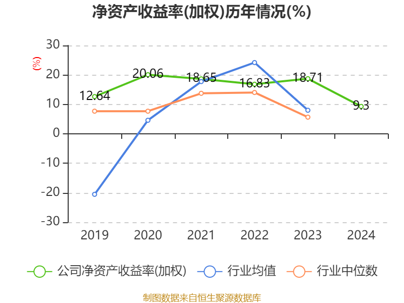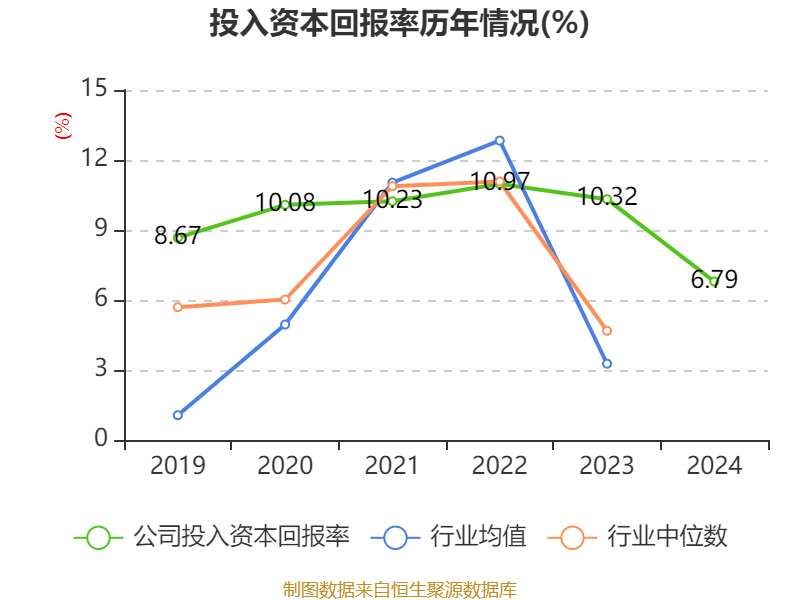 数据显示,2024年公司加权平均净资产收益率为9.3%,较上年同期下降9.41个百分点。公司2024年投入资本回报率为6.79%,较上年同期下降3.53个百分点。