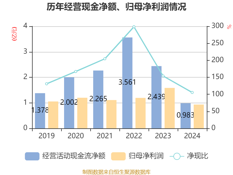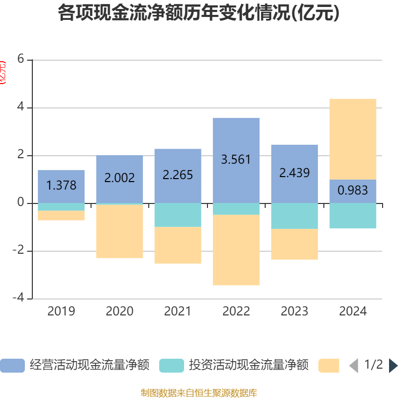 截至2024年,公司经营活动现金流净额为9825.69万元,同比下降59.71%;筹资活动现金流净额3.38亿元,同比增加4.66亿元;投资活动现金流净额-1.06亿元,上年同期为-1.09亿元。