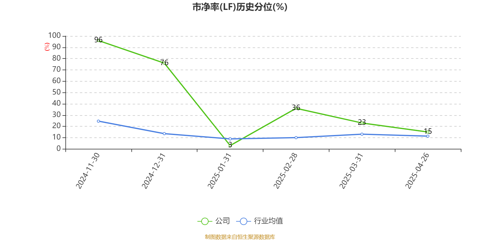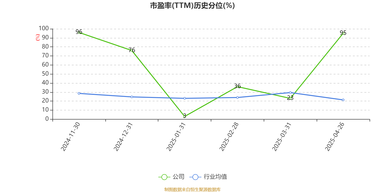 市盈率、市净率为负时,不显示当期分位数,会导致折线图中断。