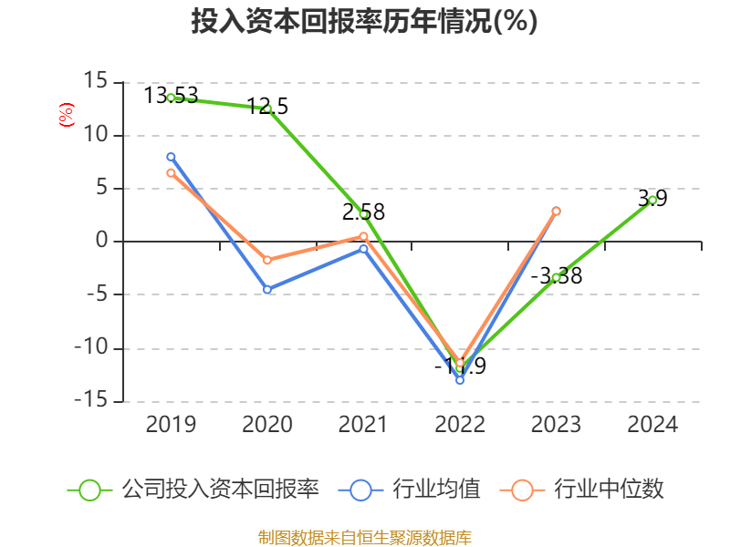 数据显示,2024年公司加权平均净资产收益率为8.32%,较上年同期上升35.35个百分点。公司2024年投入资本回报率为3.9%,较上年同期上升7.28个百分点。