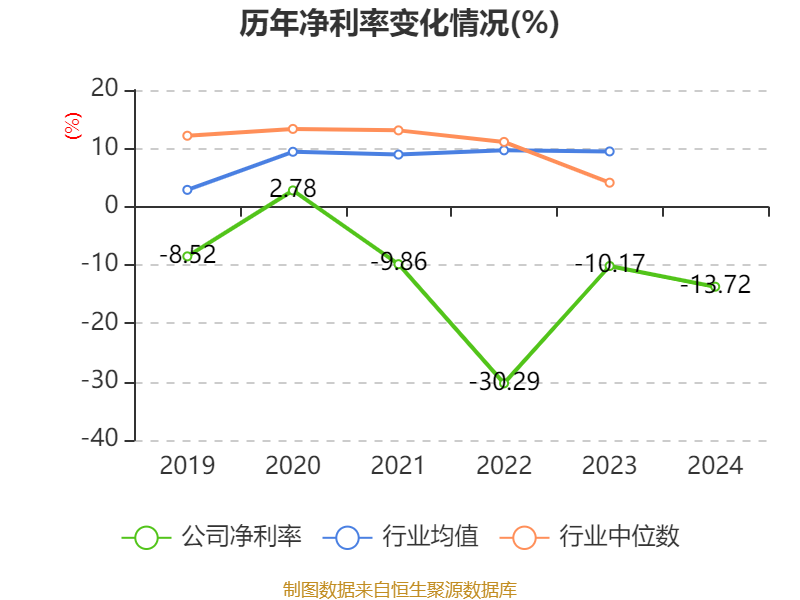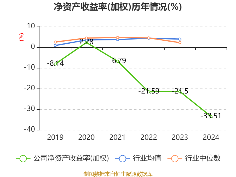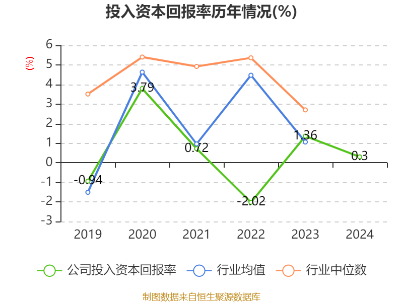 数据显示,2024年公司加权平均净资产收益率为-33.51%,较上年同期下降12.01个百分点。公司2024年投入资本回报率为0.3%,较上年同期下降1.06个百分点。