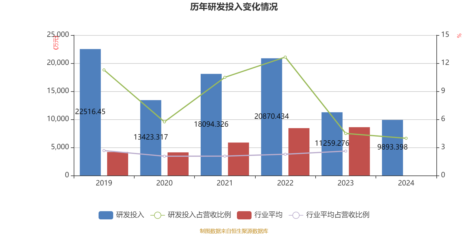 2024年全年,公司研发投入金额为9893.4万元,同比下降12.13%;研发投入占营业收入比例为3.98%,相比上年同期下降0.51个百分点。此外,公司全年研发投入资本化率为4.41%。