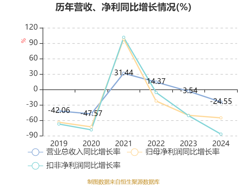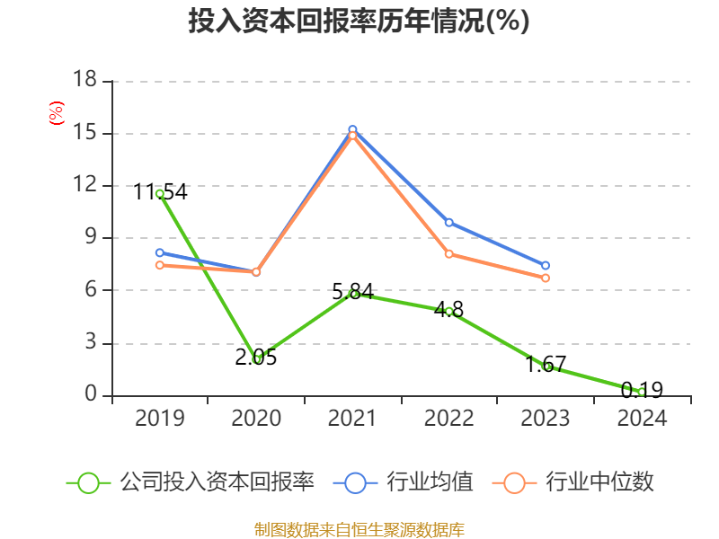 数据显示,2024年公司加权平均净资产收益率为1.1%,较上年同期下降1.38个百分点。公司2024年投入资本回报率为0.19%,较上年同期下降1.48个百分点。