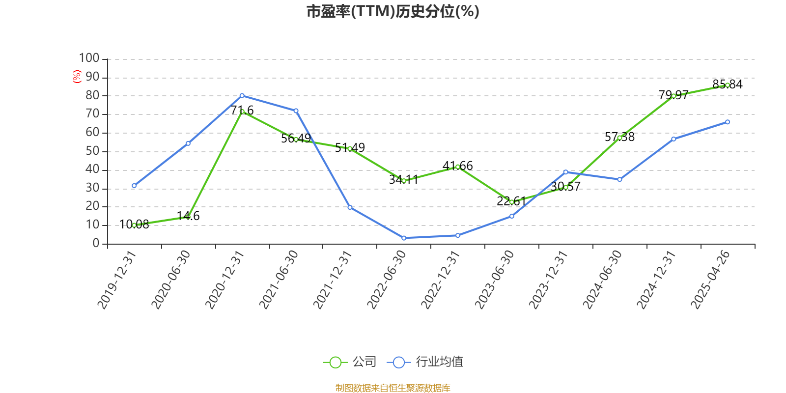 市盈率、市净率为负时,不显示当期分位数,会导致折线图中断。