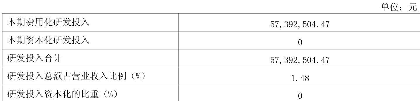 2024年全年,公司研发投入金额为5739.25万元,同比下降36.57%;研发投入占营业收入比例为1.48%,相比上年同期下降0.28个百分点。此外,公司全年研发投入资本化率为0%。