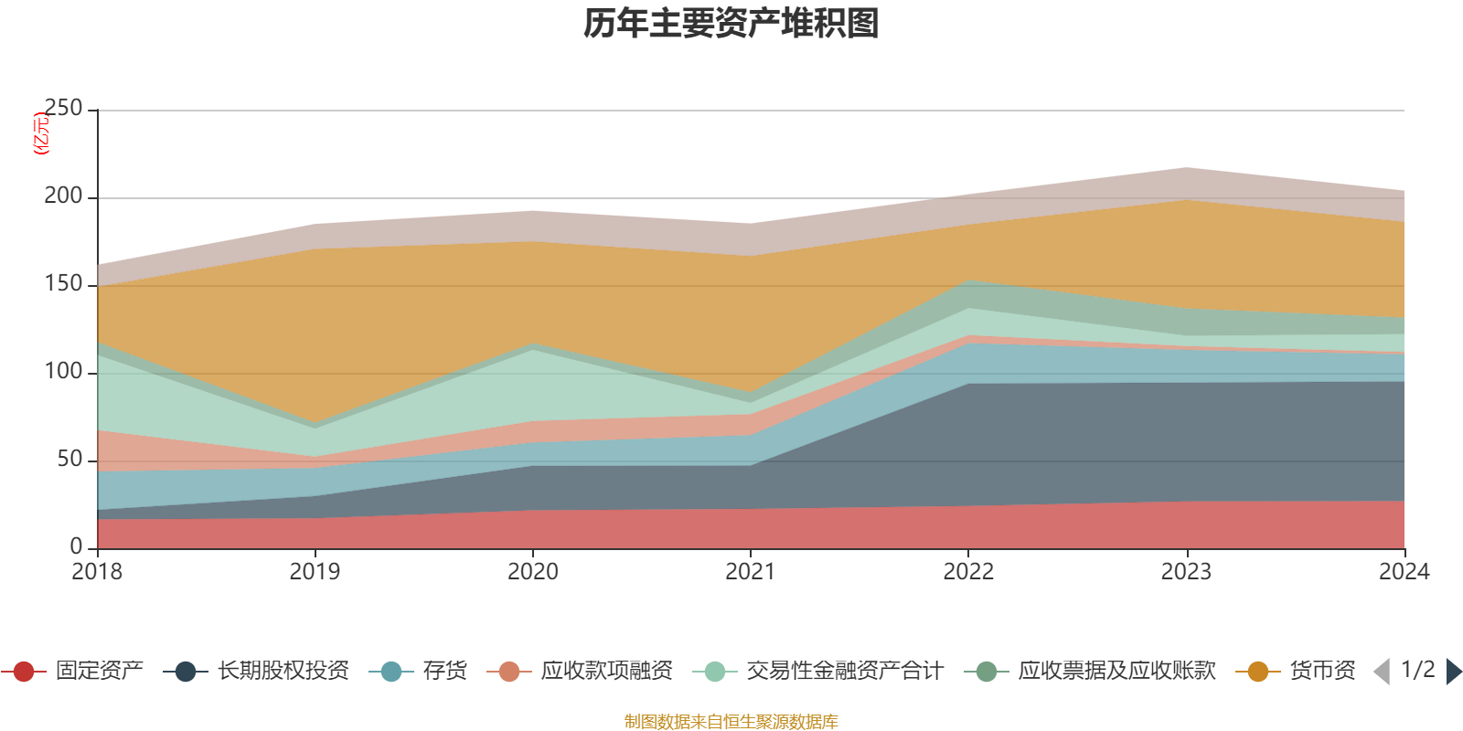 资产重大变化方面,截至2024年末,公司应收票据及应收账款较上年末减少39.19%,占公司总资产比重下降2.54个百分点;长期股权投资较上年末增加0.85%,占公司总资产比重上升2.33个百分点;交易性金融资产合计较上年末增加73.04%,占公司总资产比重上升2.28个百分点;货币资金较上年末减少11.89%,占公司总资产比重下降1.74个百分点。
