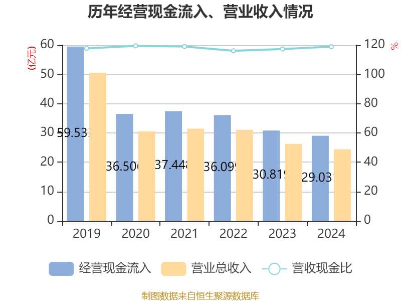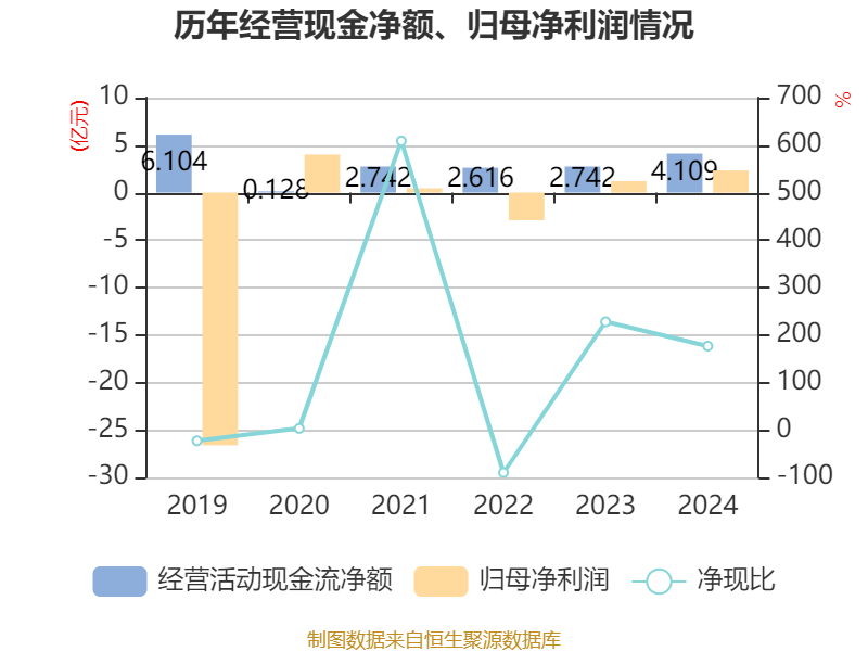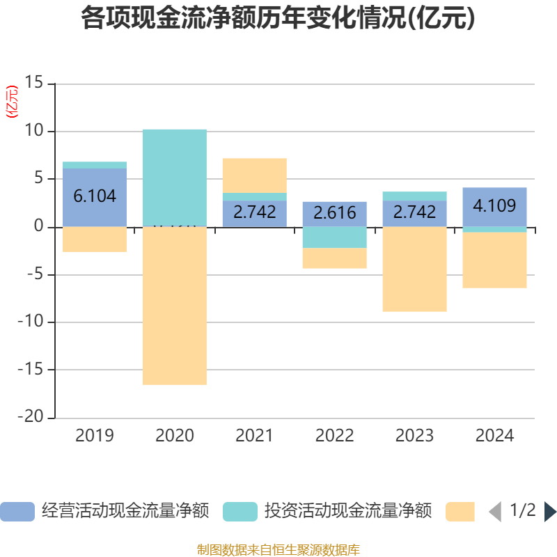 截至2024年,公司经营活动现金流净额为4.11亿元,同比增长49.88%;筹资活动现金流净额-5.83亿元,同比增加3.06亿元;投资活动现金流净额-5886.4万元,上年同期为9437.97万元。