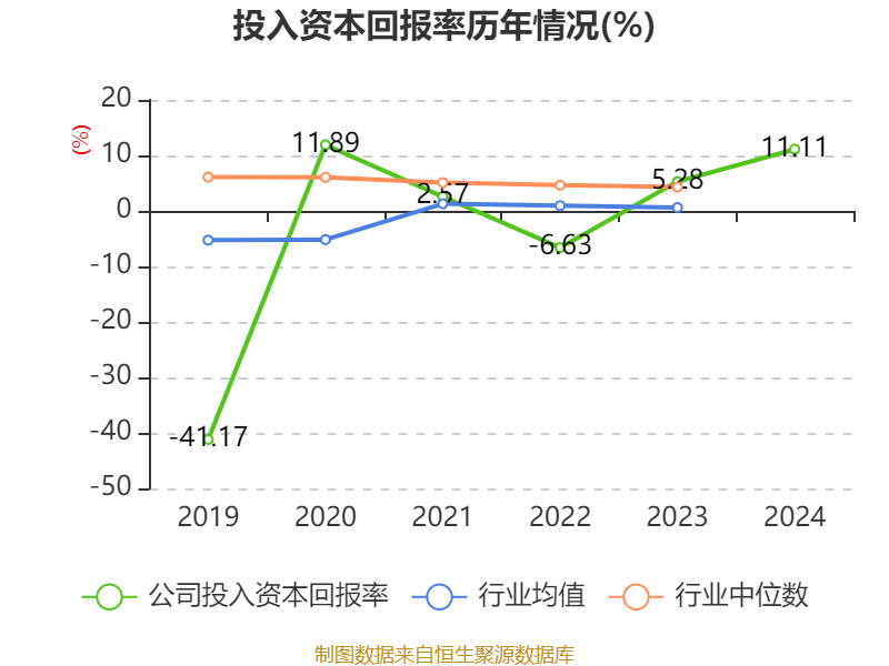数据显示,2024年公司加权平均净资产收益率为12.89%,较上年同期上升5.63个百分点。公司2024年投入资本回报率为11.11%,较上年同期上升5.83个百分点。