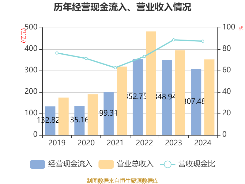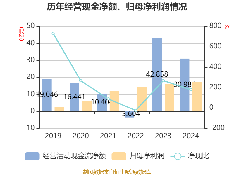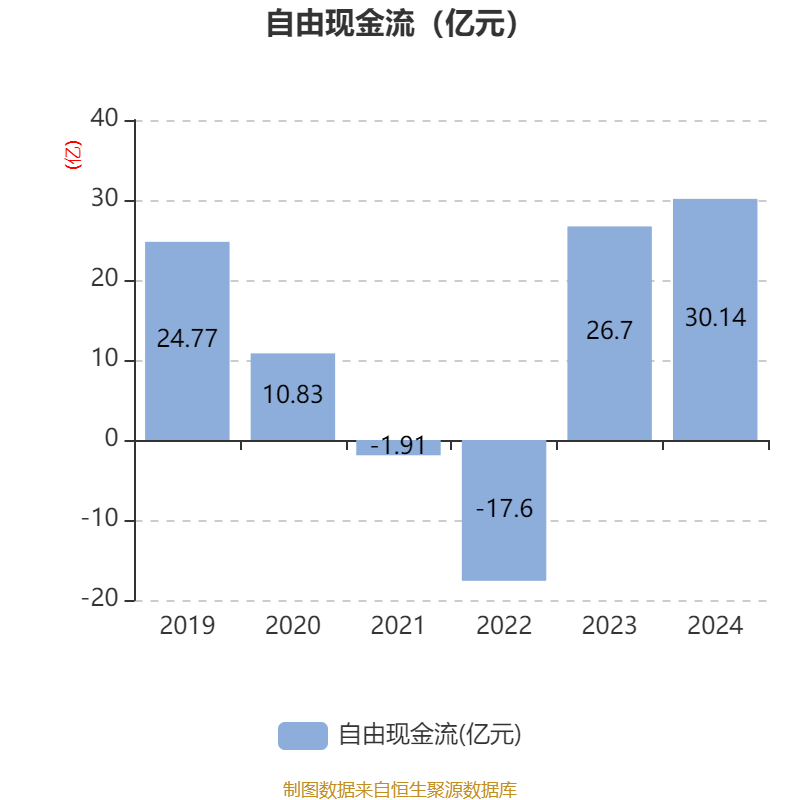 截至2024年,公司经营活动现金流净额为30.99亿元,同比下降27.7%;筹资活动现金流净额26.32亿元,同比增加36.73亿元;投资活动现金流净额-33.26亿元,上年同期为-25.86亿元。