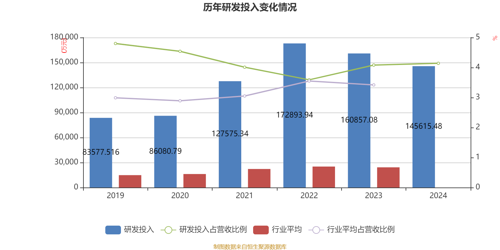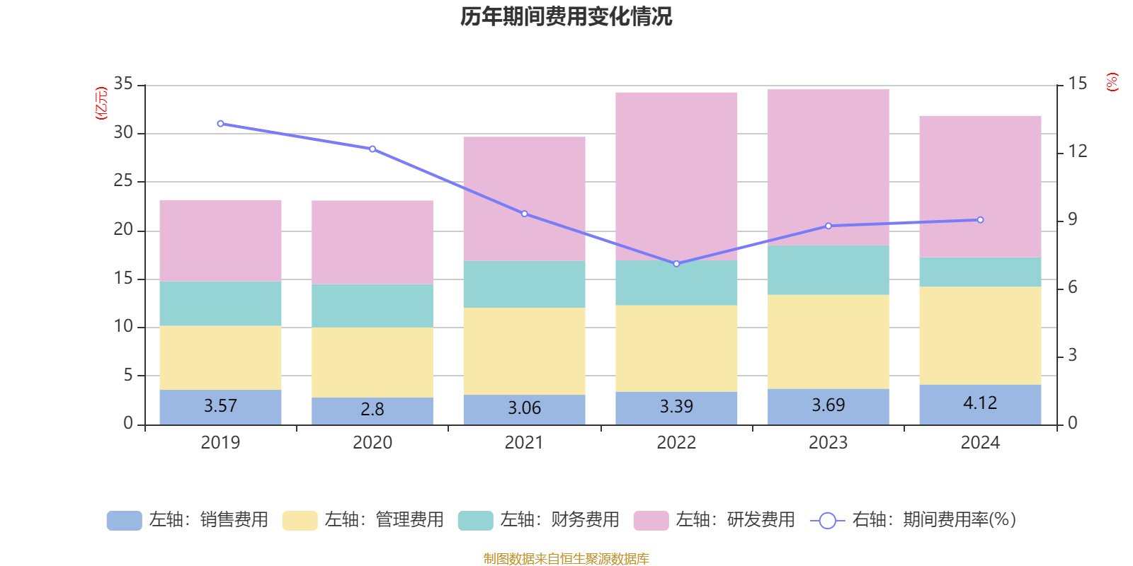 2024年全年,公司研发投入金额为14.56亿元,同比下降9.48%;研发投入占营业收入比例为4.14%,相比上年同期上升0.06个百分点。此外,公司全年研发投入资本化率为0%。