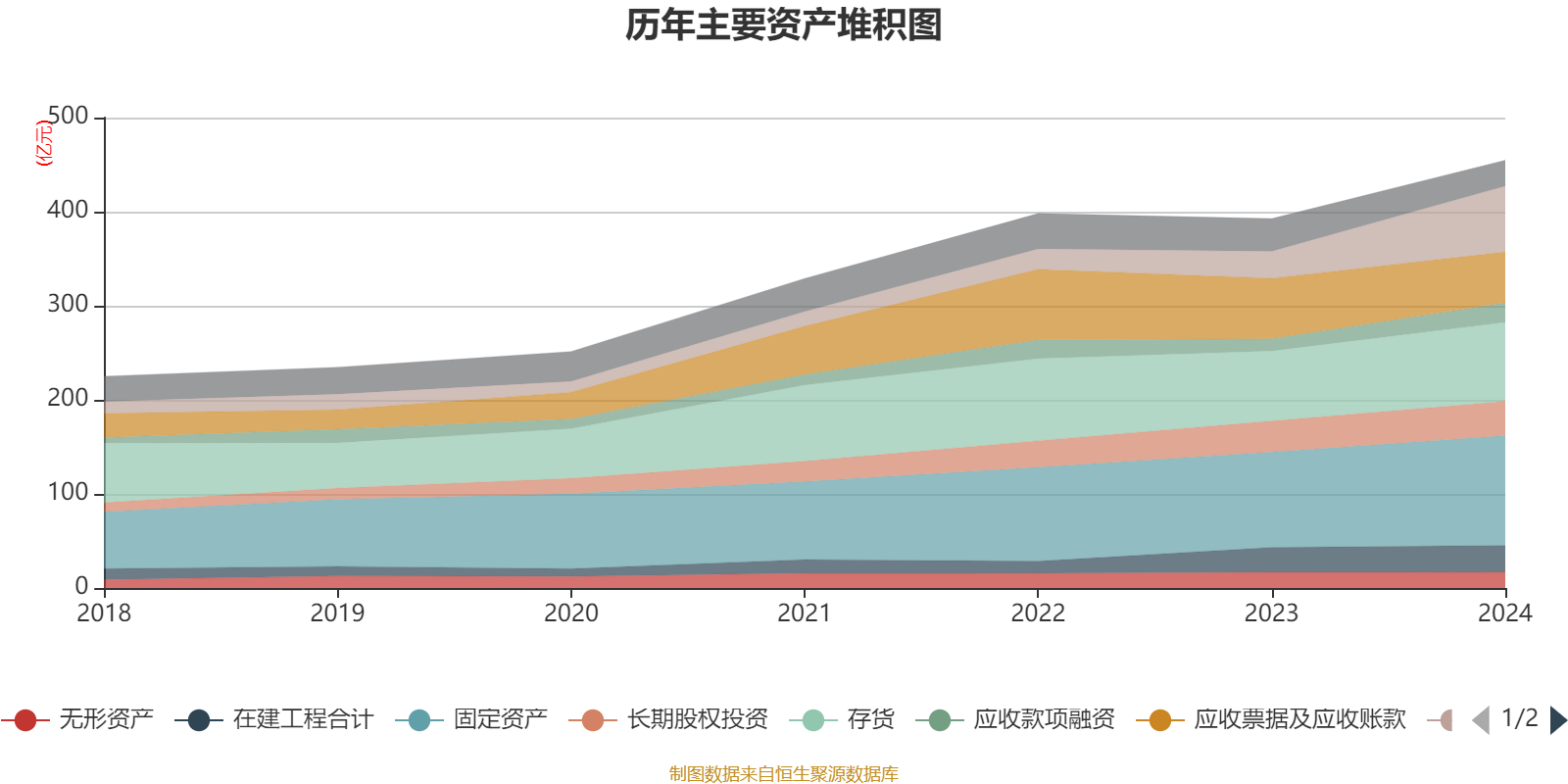 资产重大变化方面,截至2024年末,公司货币资金较上年末增加144.61%,占公司总资产比重上升8.08个百分点;应收票据及应收账款较上年末减少15.8%,占公司总资产比重下降4.47个百分点;划分为持有待售的资产较上年末减少100%,占公司总资产比重下降1.87个百分点;应收款项融资较上年末增加59.01%,占公司总资产比重上升1.24个百分点。
