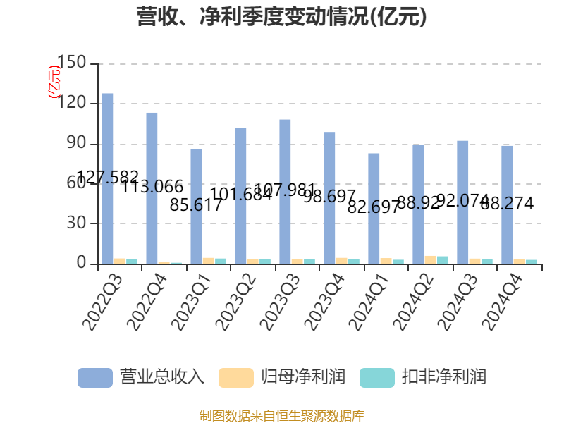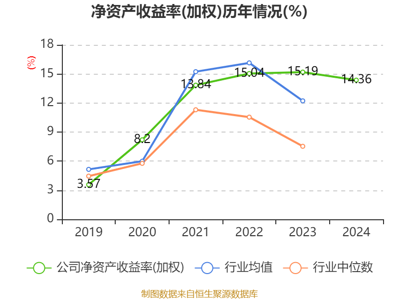 数据显示,2024年公司加权平均净资产收益率为14.36%,较上年同期下降0.83个百分点。公司2024年投入资本回报率为8.8%,较上年同期下降1.06个百分点。