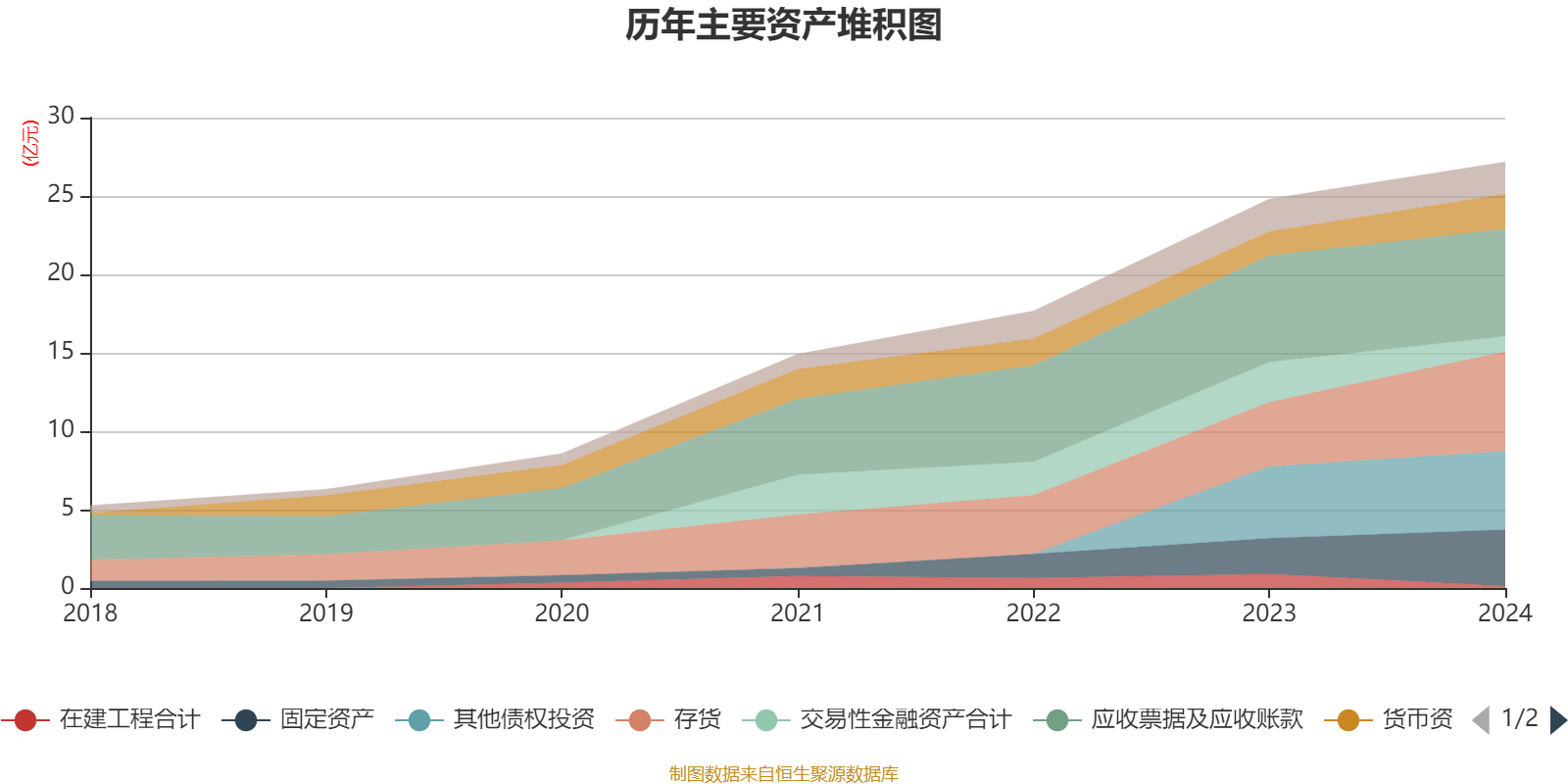 资产重大变化方面,截至2024年末,公司存货较上年末增加54.08%,占公司总资产比重上升6.75个百分点;交易性金融资产合计较上年末减少61.79%,占公司总资产比重下降6.66个百分点;固定资产较上年末增加57.69%,占公司总资产比重上升4.04个百分点;在建工程合计较上年末减少86.14%,占公司总资产比重下降3.15个百分点。