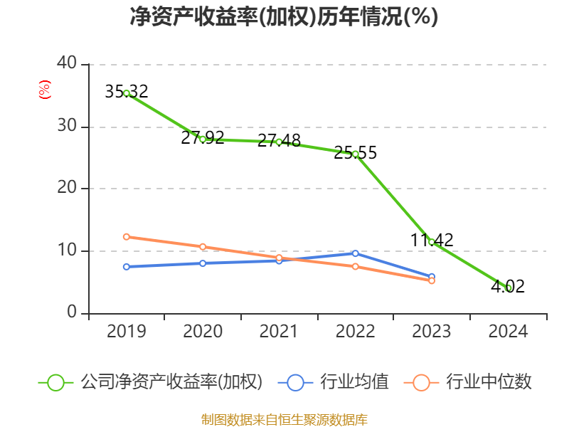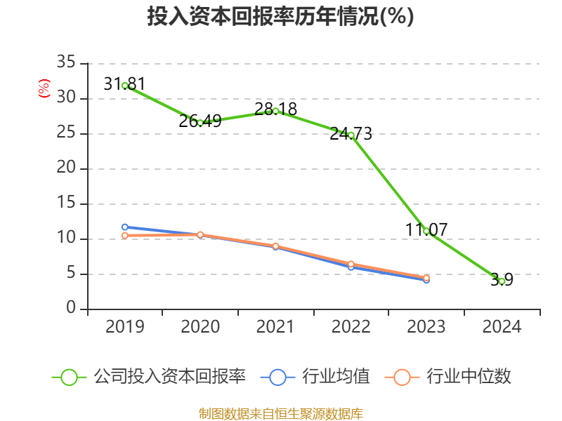 数据显示,2024年公司加权平均净资产收益率为4.02%,较上年同期下降7.4个百分点。公司2024年投入资本回报率为3.9%,较上年同期下降7.17个百分点。