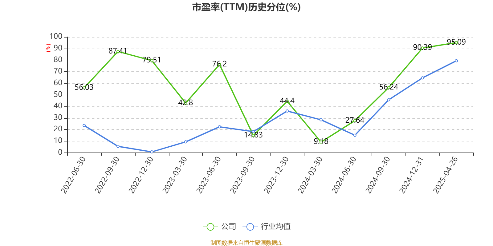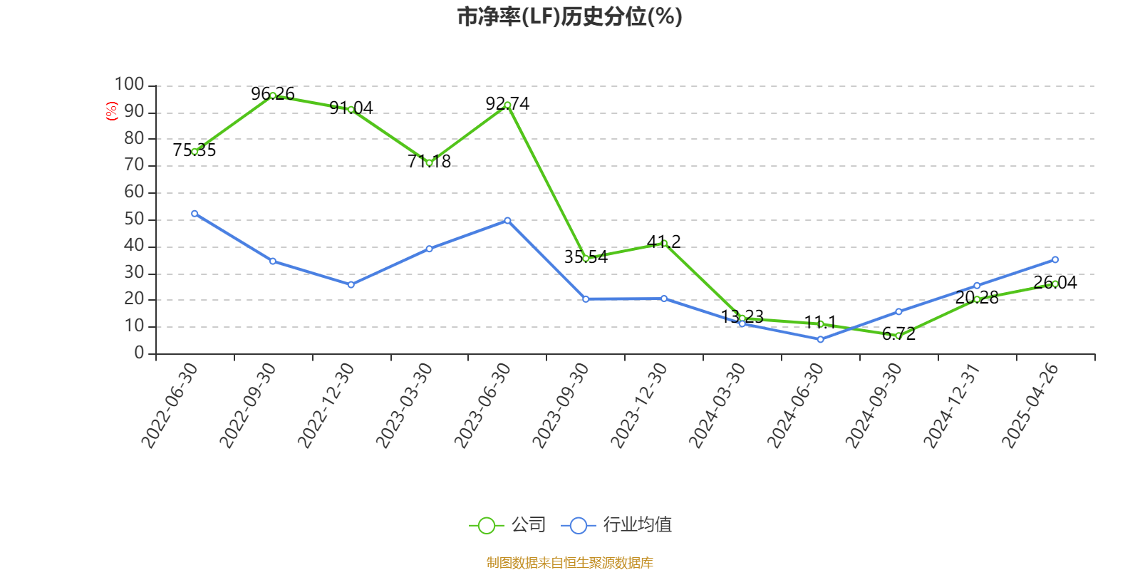 市盈率、市净率为负时,不显示当期分位数,会导致折线图中断。