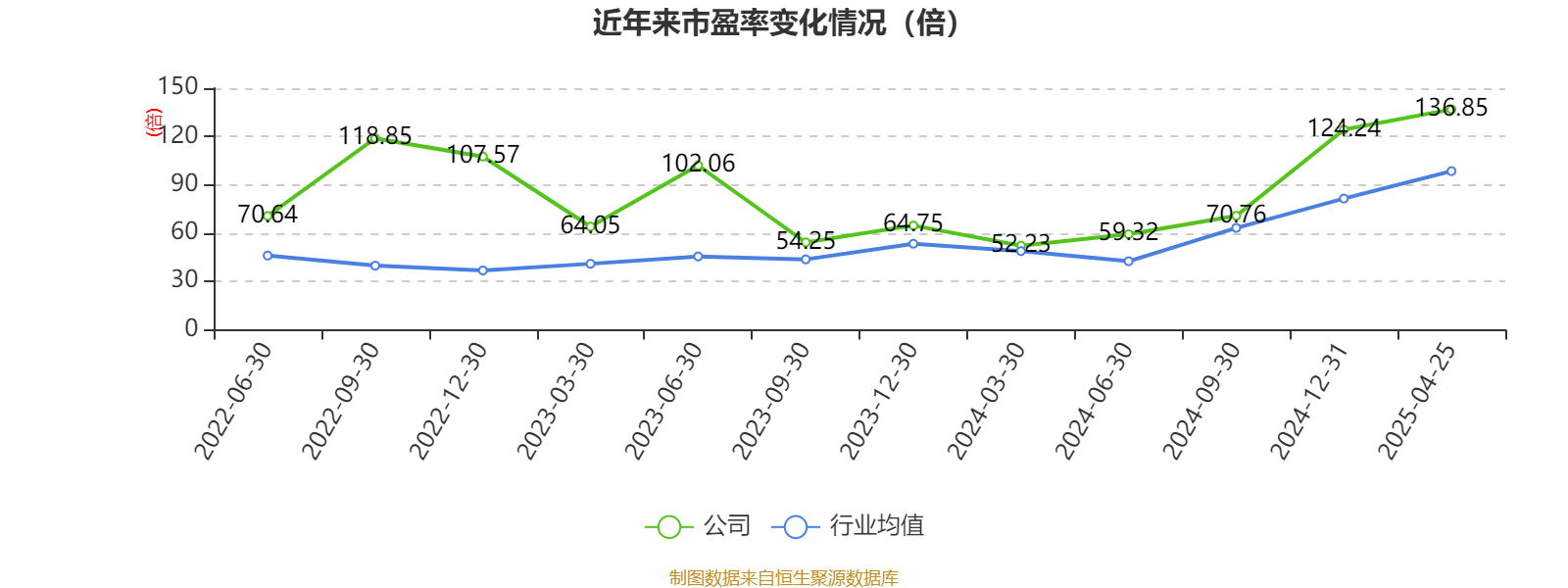 以4月25日收盘价计算,东威科技目前市盈率(TTM)约为136.85倍,市净率(LF)约5.47倍,市销率(TTM)约12.64倍。