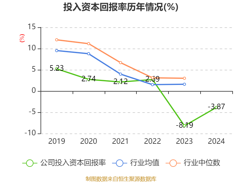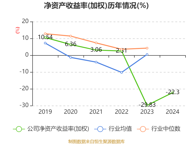 数据显示,2024年公司加权平均净资产收益率为-22.3%,较上年同期上升7.53个百分点。公司2024年投入资本回报率为-3.87%,较上年同期上升4.32个百分点。