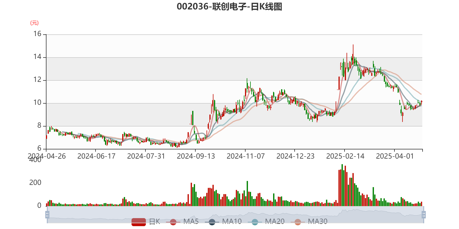 以4月25日收盘价计算,联创电子目前市盈率(TTM)约为-19.49倍,市净率(LF)约4.94倍,市销率(TTM)约1.06倍。