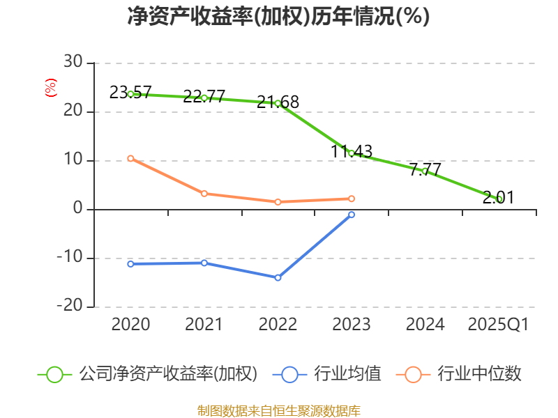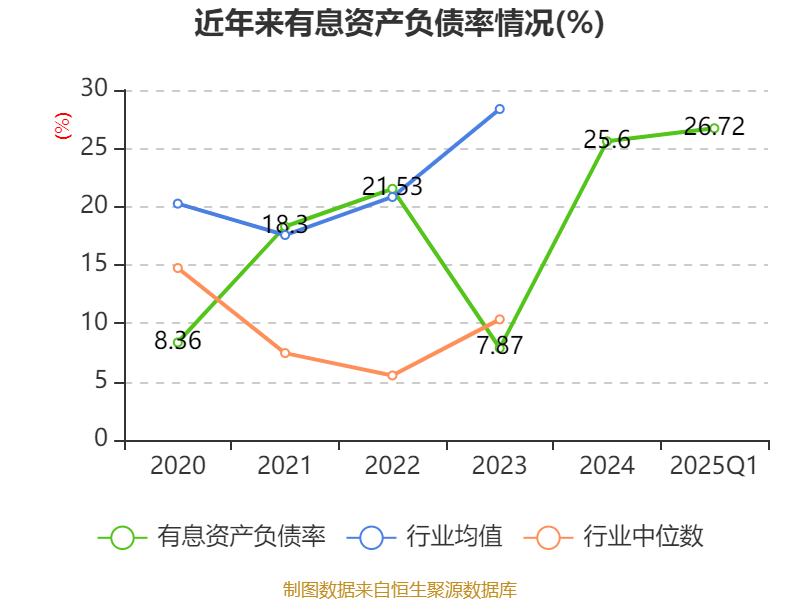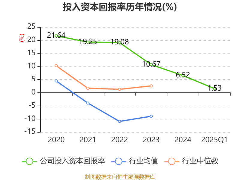 盈利能力方面, 2025年一季度公司加权平均净资产收益率为2.01%,同比上升0.1个百分点。公司2025年第一季度投入资本回报率为1.53%,较上年同期下降0.17个百分点。