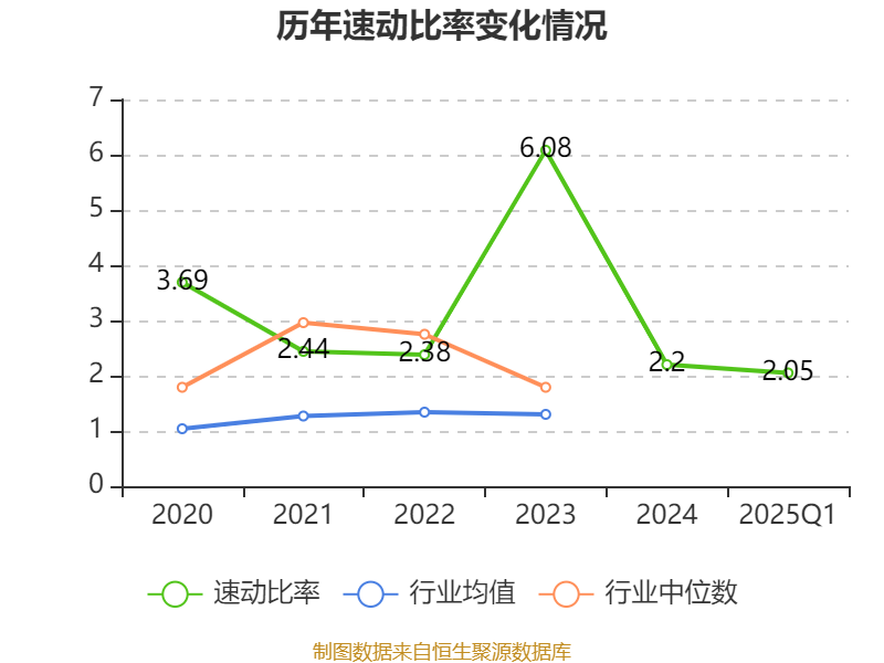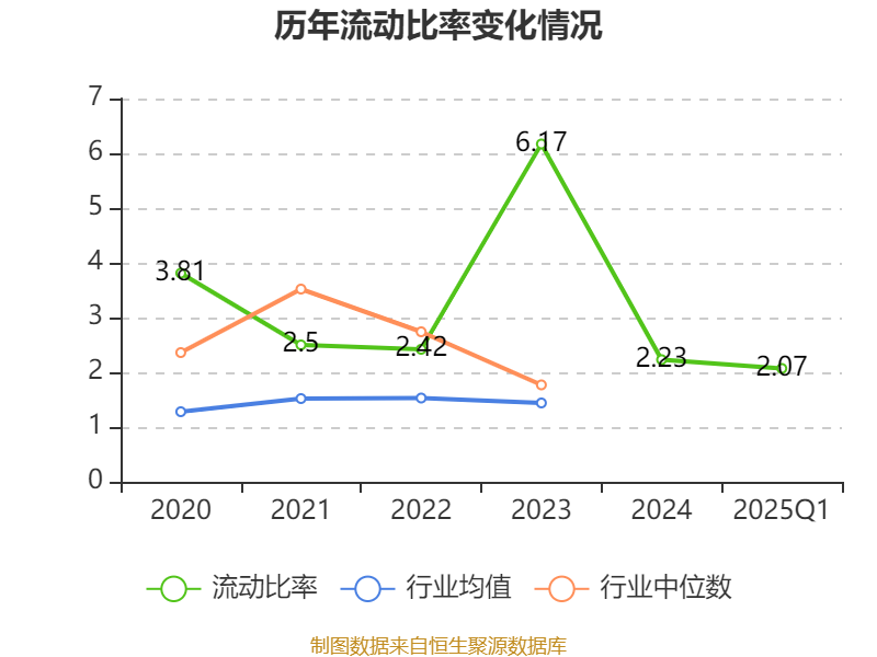 2025年第一季度,公司流动比率为2.07,速动比率为2.05。