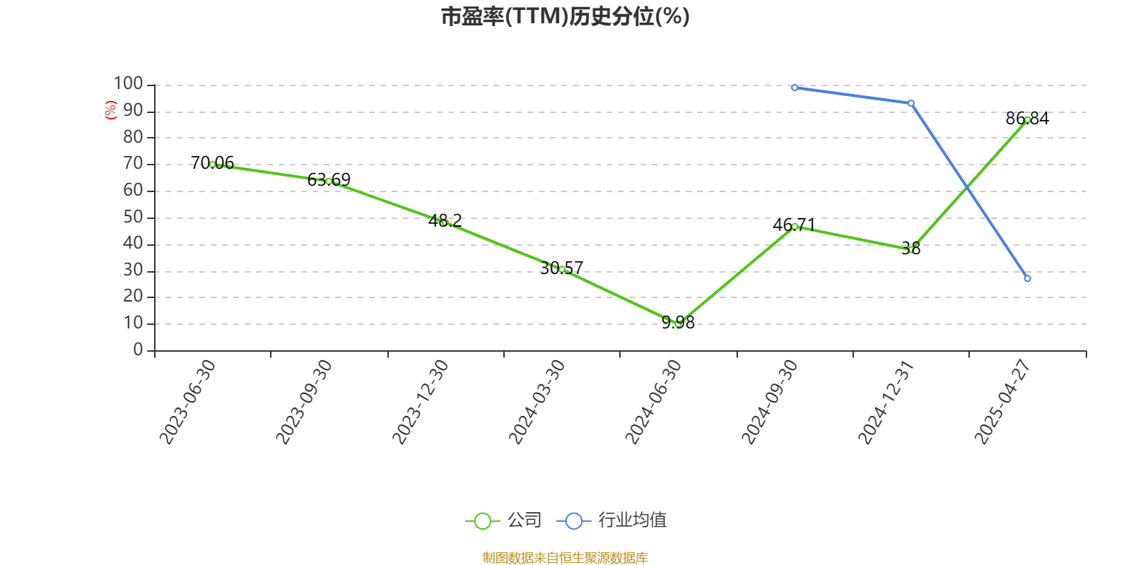 市盈率、市净率为负时,不显示当期分位数,会导致折线图中断。
