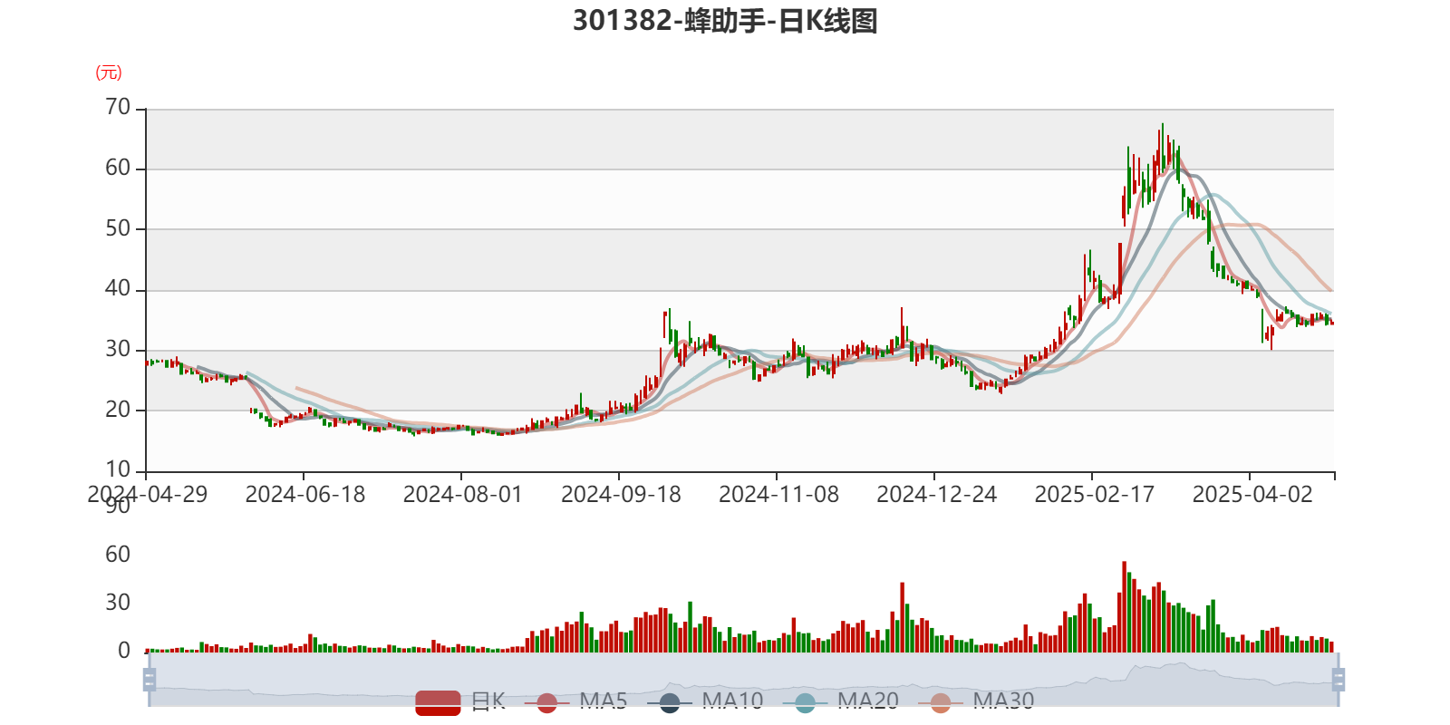 以4月25日收盘价计算,蜂助手目前市盈率(TTM)约为55.72倍,市净率(LF)约4.24倍,市销率(TTM)约4.5倍。