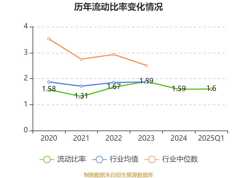 2025年第一季度,公司流动比率为1.6,速动比率为1.03。